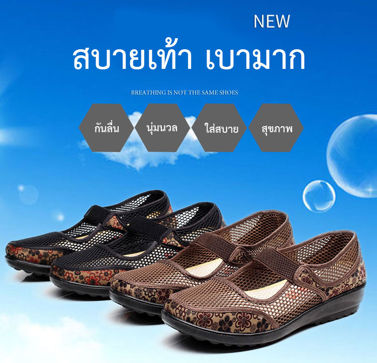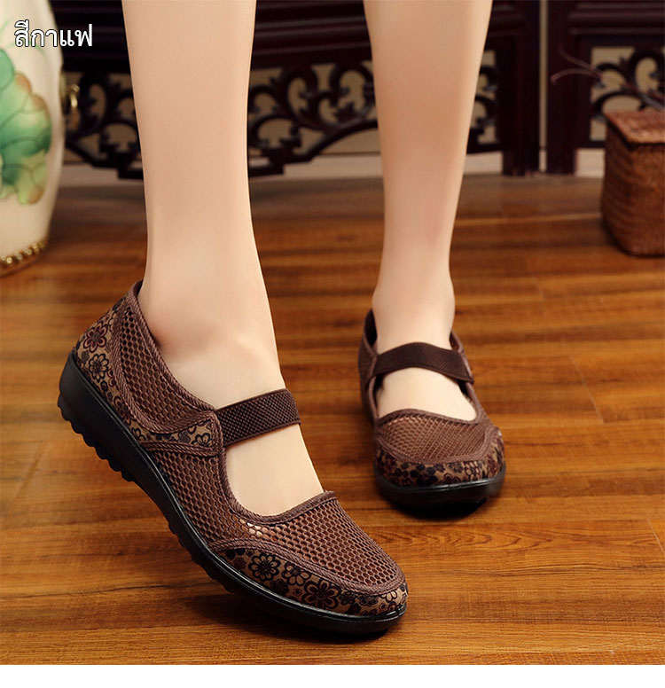 รองเท้าส้นเตี้ยผ้าใบกลวง